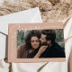 Partagez les nouvelles de votre fiançailles surprise avec ces annonces élégantes de fiançailles photo. Le design comporte l'expression "Surprise, nous nous sommes engagés !" dans un script blanc tendance et de la lettrage moderne sur un arrière - plan blush. Votre photo fiançailles est présentée dans la partie centre-droit du design avec vos noms et la date fiançailles affichés à gauche. Personnalisez le faire-part fiançailles surprise en ajoutant des détails supplémentaires ci-dessous tels que la ville/l'état mariage, le site Web mariage, etc. La faire-part s'inverse pour afficher un motif de feuillage roux sur un arrière - plan blanc.