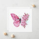 Flower arrangement of pink butterfly with rose Japanese cherry blossoms on white background.