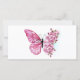 Flower arrangement of pink butterfly with rose Japanese cherry blossoms on white background.