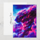 A powerful cosmic leopard emerging from vibrant clouds of neon pink, electric blue, and deep violet.