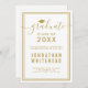 Ce simple faire-part blanc et or présente "grade" dans une police de caractères manuscrite.