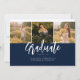 Graduation 4 Photo Collage Script Navy Blue Script carte de Faire-part. Customisez facilement en changeant le texte et en remplaçant les photos par les vôtres. Une façon moderne et moderne d'annoncer votre diplôme cette année!