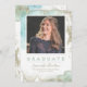 Ce faire-part photo moderne de graduation dispose d'un bel arrière - plan abstrait d'aquarelle turquoise et or en turquoise et or avec le mot "diplômé" et un espace réservé pour votre photo. Un magnifique faire-part de remise de diplômes pour célébrer un jalon spécial ! © 2021-Présent | L'Olive tacheté™ | Tous droits réservés.