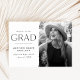 Célébrez le jalon excitant de votre diplômé avec ces annonces uniques de diplôme de photographie! Le design comporte des "félicitations à notre grade" en lettres modernes noires avec un arrière - plan blanc avec un bord déchiré en bordure de la photo senior du diplômé. Personnalisez le faire-part en ajoutant le nom du diplômé, le nom de l'école et l'année de fin d'études. La carte inverse pour afficher un motif rayé blanc et noir texturé.