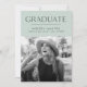 Célébrez le jalon excitant de votre diplômé avec ces annonces de graduation photo moderne! Le design comprend "Graduate" en haut en lettres modernes noires avec un bord déchiré couleur menthe bordant la photo de l'étudiant. Personnalisez le faire-part en ajoutant le nom du diplômé, le nom de l'école et l'année de fin d'études. La carte inverse pour afficher un arrière - plan vert menthe.