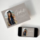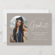 Faire-part tendance de remise des diplômes avec la photo du diplômé encadrée par une arche grige avec "Graduate" dans une écriture manuscrite blanche. Personnalisez l'avant de la carte de faire-part de remise de diplômes en arc en ajoutant le nom du diplômé, l'année de remise de diplômes, le nom de l'école et les plans futurs. La faire-part de graduation de la photo s'inverse pour afficher un motif en pointillé gris/beige et blanc. Le faire-part convient aussi bien aux diplômés du secondaire qu'aux diplômés du collégial.