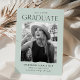Célébrez le jalon excitant de votre diplômé avec ces annonces de graduation photo moderne! Le design présente l'année de graduation en haut avec "Graduate" montré ci-dessous en lettres modernes noires. La photo du diplômé est affichée à l'intérieur d'un cadre vert menthe aux bords déchirés. Personnalisez le faire-part en ajoutant le nom du diplômé, le nom de l'école et les plans futurs (collège, militaire, choix de carrière, etc.). La carte inverse pour afficher un arrière - plan vert menthe solide.