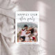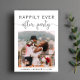 Élégant aménagement ou petit faire-part mariage et invitation à la réception. Le devant présente votre photo de jour de mariage et "Happily Ever After Party" dans un mélange de typographie simple et d'un joli script avec des swashes. Sous votre photo, vous pouvez ajouter vos prénoms et votre date de mariage. À l'envers, vous pouvez personnaliser votre message de manière plus détaillée et ajouter les détails de l'invitation de réception ou de la partie et vos noms dans un script de type signature.