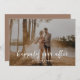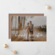 Un faire-part mariage élégant avec une version horizontale de fond de saignement de votre photo préférée superposée avec le titre modifiable "joyily ever after" en caractères décontractés blancs. Personnalisez avec vos noms et date mariage et message au verso de la carte sur un arrière - plan de tonalité terre.
