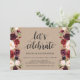 Cette carte d'invitation sur le thème floral burgundy rustique est parfaite pour votre réception de mariage / célébration de fête. Ajoutez vos coordonnées dans une police / lettrage noir assorti.