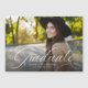 Un script classique et élégant, diplômé en blanc, se trouve au bas d'une photo horizontale. Le texte personnalisé comprend la place pour le nom du diplômé ainsi que les détails de l'école et de l'année. Cette carte magnétique est le moyen idéal pour annoncer l'accomplissement de votre diplômé à vos amis et à votre famille !