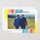 Belle carte d'annonce de mariage arc-en-ciel avec de jolies touches de peinture artistiques pleines de couleurs vives entourant la photo des jeunes mariés d'un couple LGBTQ. Ces cartes de mariage colorées sont parfaites pour un couple gay ou lesbien.