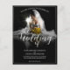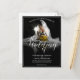 faire-part mariage avec photo d'une mariée rêveuse assise avec un bouquet jaune de fleurs dans le pénumbra - style classique. Les noms, le texte, l'emplacement et la date peuvent être customisés dans le modèle.