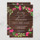 Faire-part Mariage champêtre en bois rustique avec fleurs ros