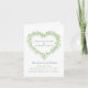 Carte pliée d'annonce de mariage en direct avec monogramme, feuillage et baies de gui dessinés à la main en vert et blanc pour une atmosphère hivernale. Cette carte simple mais élégante fait partie de la collection assortie de mariage hivernal avec feuilles de gui et baies en forme de cœur, dans les tons vert, blanc et gris foncé dessinés à la main. Idéale pour informer vos invités d'un événement de diffusion en direct de mariage en raison de circonstances imprévues. Dessin botanique simple de gui en forme de cœur. Dans les tons classiques de vert feuillage, gris foncé et blanc. D'autres options de couleurs sont disponibles. Création originale de Sarah Trett pour www.mylittleedenweddings.com