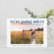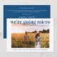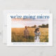 Une annonce fraîche et joyeuse pour informer votre liste de invités originaux que les circonstances vous ont obligé à réduire la taille de votre mariage. "Nous allons micro" est écrit en haut de votre photo de fiançailles préférée en caractères gras, propres et modernes de couleur bleu clair classique, et en dessous vous pouvez personnaliser vos noms et l'annonce de réduction. Au verso, vous pouvez personnaliser votre message plus en détail et ajouter des informations de diffusion en direct et du site web de mariage, le tout en typographie blanche sur fond bleu classique.