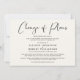Si des circonstances telles que les directives de distanciation sociale vous obligent à réduire la participation à votre mariage, vous pouvez informer votre famille et vos amis sur votre liste de invités étendue originale avec cette annonce de mariage réduite, moderne et minimale, mais élégante, de couleur crème clair. "Changement de plans" est écrit dans un script élégant et vous pouvez personnaliser le message de réduction de mariage avec plus de détails et ajouter toute information de diffusion en direct de la cérémonie, de futures célébrations et du site web du mariage.