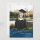 Faire-part Marine Blue Gold Script moderne | Photo de diplôme