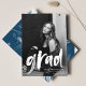 Annonces modernes de remise de diplômes avec la photo du diplômé avec "grad" dans une superposition de script en brosse blanche. Personnalisez le devant du faire-part de remise de diplômes en y ajoutant le nom, l'école, le nom et l'année de remise de diplômes du diplômé. L'arrière de la faire-part est orné d'un arrière - plan de pinceaux peints de marine.