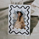 Carte de faire-part de graduation unique et originale à envoyer à la famille et aux amis. Il y a une ligne ondulée serrée dessinée à la main autour de votre photo avec le nom du diplômé ci-dessous. Noir et blanc.