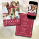 Ajoutez vos quatre photos préférées à l'avant de ces invitations à la fête de remise des diplômes mettant en vedette les diplômés et la classe de en lettrage chic sur un arrière - plan couleur rouge crimson de l'école. Cliquez sur le lien Personnaliser pour changer de couleur à l'aide de nos outils de conception. PLUS de dessins et de couleurs réalisés dans notre magasin, y compris les invitations, enregistrer les cartes de date et les cartes postales.