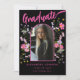 Faire-part Moderne Floral Diplômé Photo noir rose Script