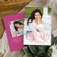 Annoncez votre diplôme de fin d'études secondaires ou collégiales avec ce faire-part moderne. Le faire-part de graduation affiche "Grad" en lettres rose magenta tendance avec l'année de graduation affichée à l'intérieur de la lettre 'd'. Personnalisez l'avant du faire-part avec la photo, le nom et l'école supérieurs verticaux du diplômé. Le faire-part s'inverse pour présenter une photo supplémentaire affichée à l'intérieur d'un cadre de carré blanc avec votre message ci-dessous.