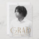 Annoncez la réussite de votre diplômé en style avec cette élégante et moderne faire-part de diplôme. Avec la photo verticale du diplômé, "Grad" est présenté en laiton antique, en lettrage art déco moderne, créant un look sophistiqué et intemporel. Personnalisez l'avant de ce faire-part photo unique avec le nom du diplômé, l'école et l'année de diplôme pour une touche personnalisée. L'envers présente un design en laiton raffiné et en tourbillon géométrique blanc, offrant un contraste chic. Idéal pour les diplômés du secondaire et du collégial, ce faire-part personnalisable est le moyen parfait de célébrer et de partager leur moment spécial.