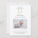 Elégante et adorable carte de Faire-part de naissance bébé avec poitrine d'aquarelle avec arc bleu avec Monogramme au milieu.