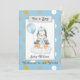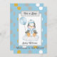 Célébrez l'arrivée de votre petit garçon avec cette carte de faire-part de bébé Penguin mignon. La carte comporte un pingouin de dessin animé petit garçon tenant un ballon bleu et assis sur un nuage avec un point de polka arrière - plan de bleu blanc et gris / gris. La carte peut être customisée avec votre propre faire-part et personnalisée avec vos propres détails bébé. Le verso de la carte annonce la naissance ou vous fils avec son nom, la date de naissance et le poids, plus vous ajouter vos propres noms en bas. Tous les textes peuvent être modifiés selon nos propres besoins. Oh et félicitations.