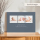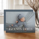 Un design faire-part de naissance simple et intemporel avec une photo horizontale à fond de saignement ou orientée paysage avec le nom du bébé et les stats de naissance superposés le long du fond en lettres blanches classiques. Ajoutez trois photos de carré supplémentaires à l'arrière, ainsi qu'un message personnel.