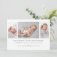 Carte d'annonce de naissance moderne avec collage de 3 photos et typographie classique.