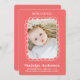 Faire-part de naissance photo simple et sucré avec un cadre rectangle à échalotes dessiné à la main blanche, des champs de texte modifiables pour vos détails dans un combo assorti de polices sans empattement modernes et ludiques en blanc, et un espace réservé pour une seule photo verticale sur un arrière - plan rouge. Personnalisez facilement cette conception pour correspondre à votre style en cliquant sur "Personnaliser" pour aller à l'outil de conception et ajouter votre propre texte ou détails personnalisés.