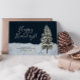Souhaitez à la famille et aux amis un message de Joyeux Fêtes cette saison de Noël. Scène de neige moderne avec élégant arbre couvert de neige.
