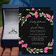 Faire-part Noir Élégant avec Fleurs Roses et Feuillage pour M