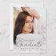 Annoncez les réalisations de votre diplômé et les plans futurs avec ce faire-part de graduation photo moderne et élégant. L'avant du faire-part affiche la photo verticale du diplômé qui saigne complètement. "Graduate" s'affiche dans un script noir à la mode écrit à la main. Personnalisez le faire-part avec l'année d'obtention du diplôme, le nom du diplômé et le nom de l'école. Le faire-part inverse pour afficher une photo supplémentaire avec votre texte personnalisé ci-dessous en lettres noires. Ce faire-part de 2 diplômes photo est parfait pour les diplômes du secondaire ou collégial.