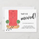 Es-tu en train de déménager avec ton chien ? Cette carte à faire-part mobile amusante comporte une porte rouge et des plantes de pot avec pattes de chien. Il dit "We've Moved" dans la typographie stylée. Vous pouvez changer le numéro sur la porte de votre nouveau numéro. Facile à personnaliser. Aquarelle originale © Michele Davies.
