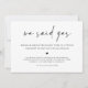 Nous avons dit oui ! Une carte moderne minimaliste en noir et blanc pour annoncer votre mariage ou l'élévation à vos amis et votre famille.