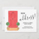 Cette simple carte de faire-part mobile est décorée d'une porte rouge aquarelle, de plantes de pot topiaire et d'une typographie stylisée. Facile à personnaliser. Changez le numéro sur la porte rouge à votre nouveau numéro ! Aquarelle originale © Michele Davies.