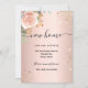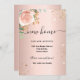 Un arrière - plan d'or rose à l'aspect faux métallique décoré d'or rose et de couleur rose vif floral, écalyptus verdure, sprigs botaniques faux or, feuillage et poussière de parties scintillant dorée. Avec le texte : Nouveau foyer. Personnalisez et ajoutez votre nouvelle adresse et votre nouveau nom.
