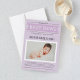 Annoncez la grande nouvelle de l'arrivée de votre bébé à votre famille et à vos amis avec style grâce à une annonce de naissance photo de style journal. La conception met en avant le nom de votre bébé, les détails et la photo en tant que titre et article de première page. Couleurs lavande/violet pourpre et gris étain.