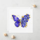 Bijoux, bleu, saphir, papillon aux fleurs pétillantes avec aile décorée de bleu, fleurs précieuses avec feuilles d'or sur arrière - plan blanc.