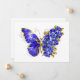 Bijoux, bleu, saphir, papillon aux fleurs pétillantes avec aile décorée de bleu, fleurs précieuses avec feuilles d'or sur arrière - plan blanc.