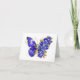 Bijoux, bleu, saphir, papillon aux fleurs pétillantes avec aile décorée de bleu, fleurs précieuses avec feuilles d'or sur arrière - plan blanc.
