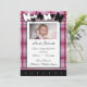 Annonces de naissance avec un design en plaid rose qui souligne la faire-part avec un thème en papillon noir et blanc et customisé avec la photo de votre bébé!