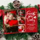 Carte de faire-part de naissance de Noël moderne, photo collage. Annoncez la naissance de votre bébé avec cette carte de faire-part de naissance de vacances. Design dispose de 4 photos du bébé, script de typographie "père Noël est venu tôt" dans des lettres tendance. Personnalisez-vous avec plus de détails sur le dos.