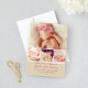 Cette carte de faire-part de naissance photo élégante et douce comprend quatre (4) photos de votre nouveau-né fille, texte personnalisé qui peut être personnalisé, accents cardiaques, et un jeu de couleurs de rose rose, gris chaud et beige neutre.
