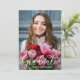 Annoncez votre graduation avec ces cartes montrant votre photo préférée, votre nom et le mot Graduate en lettres blanches chic sur le devant et vos informations de fête sur le dos. OBJETS CORRESPONDANTS dans notre magasin.
