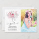 Roses roses roses et faux carte photo de graduation de feuillage argenté avec un rembourrage de luxe tufté rose brossé de diamants. Une photo de style portrait est conseillée.