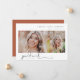 Script de signature, 2 cliché photo, faire-part de graduation. Caractéristiques, 2 photos sur l'avant et fond de couleur orange rouille solide.